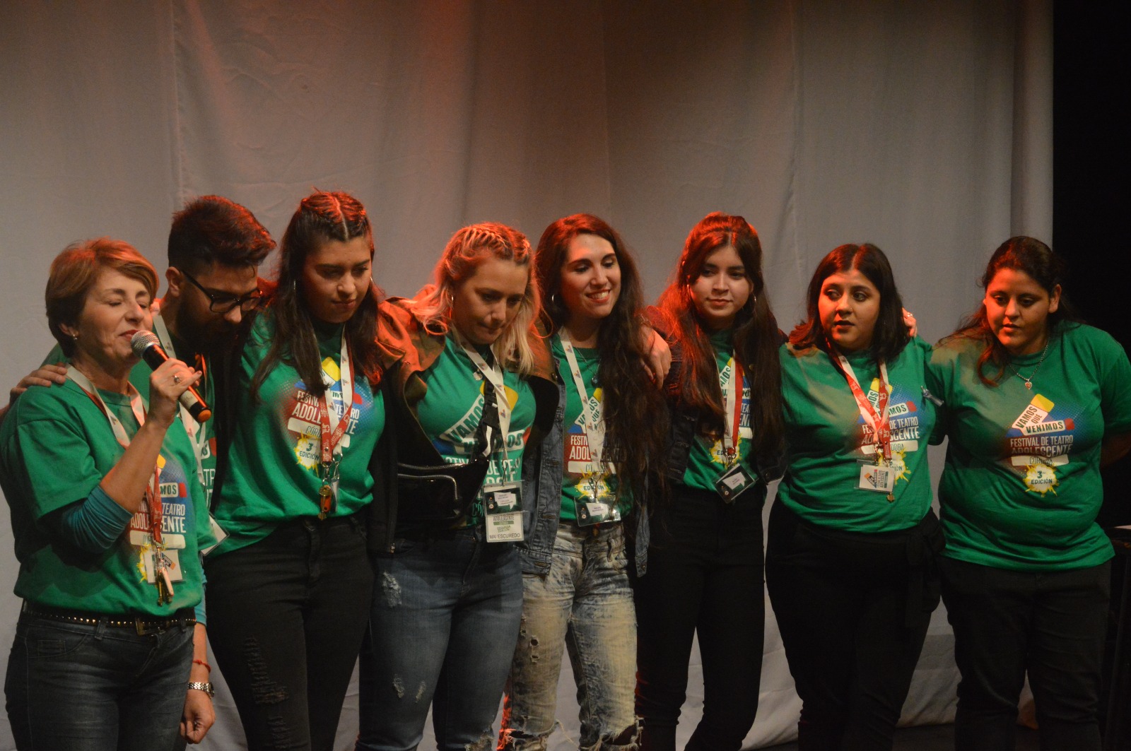 actrices de la agrupación, docentes y ex alumnxs, llevando a cabo este evento,
